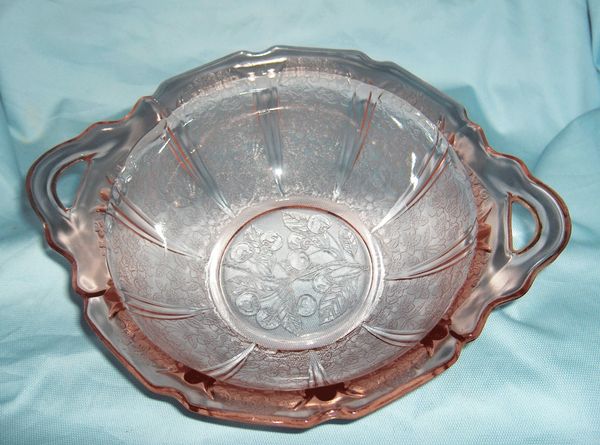 Pink Depression Glass Handled Tray Cherry Blossom Pattern